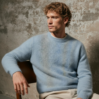 Un fil duveteux et lumineux, choisi pour sa douceur, son volume et sa tenue.